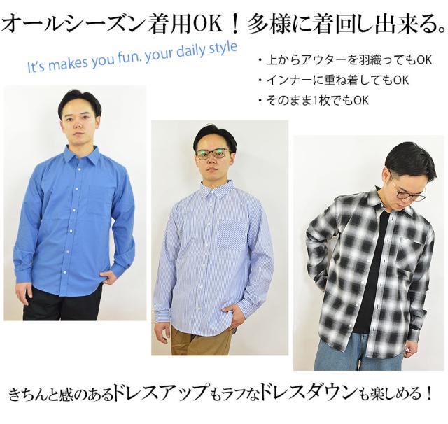 長袖シャツ メンズ カジュアルシャツ 長袖 シャツ 薄手 無地 ストライプ チェック オンブレ ブロードシャツ 無地シャツ ストライプシャツ チェックシャツ ブロード 生地 綿 ポリエステル メンズシャツ ストライプ柄 ワイシャツ チェック柄 白シャツ 黒シャツ ブルー ビジネス