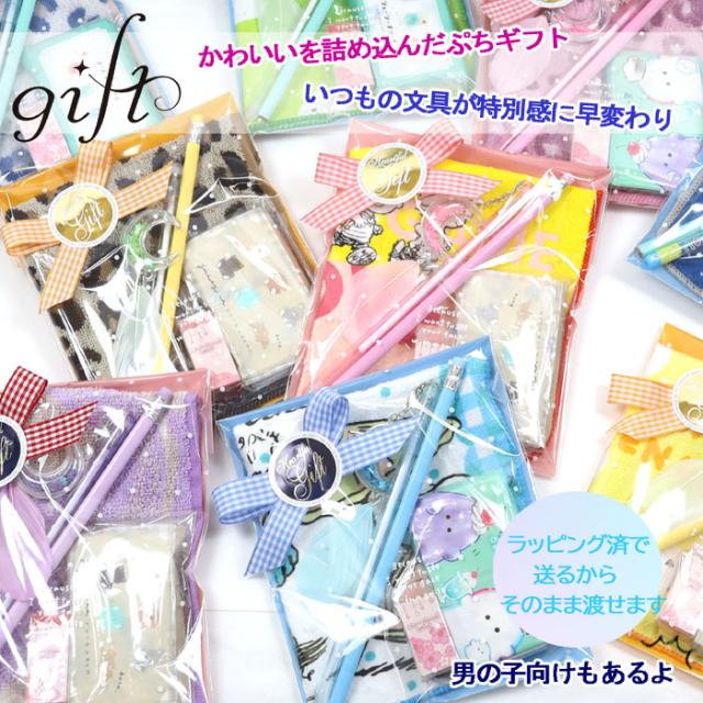 小学生向け 文房具 ハンカチ 5点入ったぷちギフト 子ども会 イベント 男の子 女の子 かわいいを詰め込んだギフト お楽しみ ラッピング済 景品 こども 女子 ab-584300