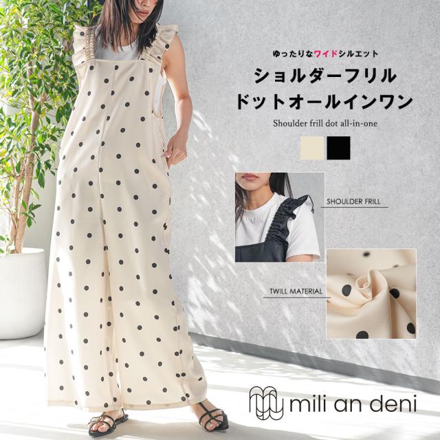 商品名:ショルダーフリルドットオールインワン