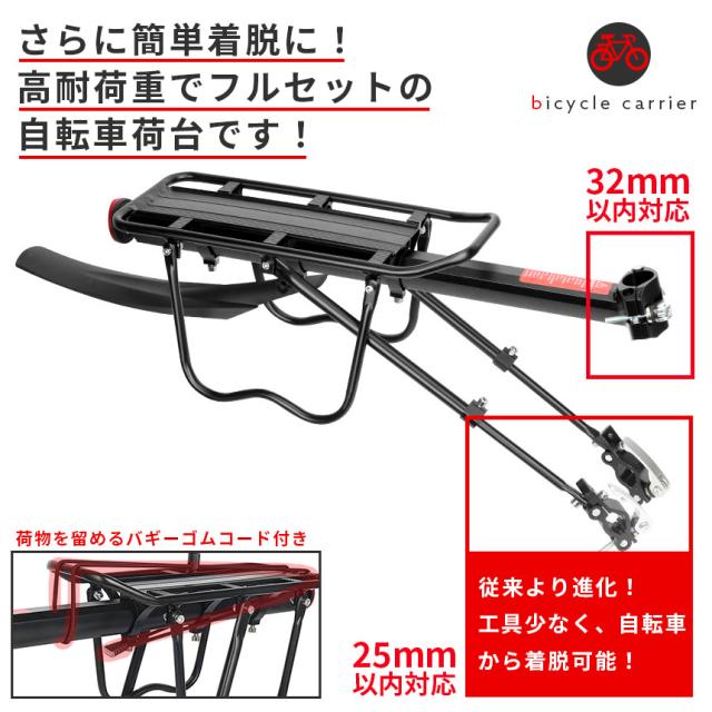 自転車荷台 リアキャリア 自転車 泥除け付き アルミニウム合金 サイクルキャリア ワンタッチ 耐荷重80kg 安定 固定用ゴム紐 反射板 取付工具付き 軽量 クイックリリース リアキャリア 荷台 ロードバイク マウンテンバイク クロスバイク リフレクター付き サイクリング