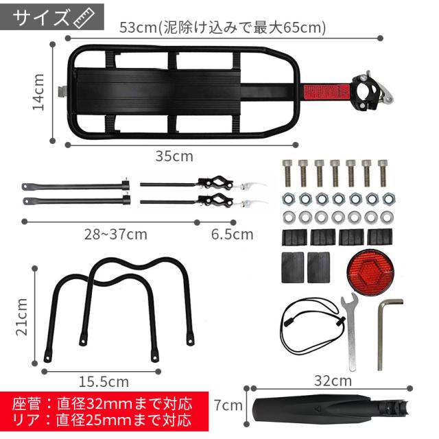 ◎泥除け&反射板付きの自転車用荷台◎着脱がしやすく進化!