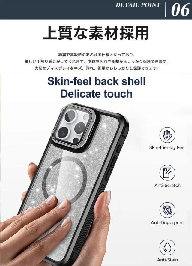 iPhone 16 用 ケース スタンド付き アイフォン16 プロ ケース きらきら キラキラ スタンド機能 角度調整可能 iPhone 15 Pro Max iPhone 14/ 13/ 12/11 落下防止 防塵 薄型 軽量 一体型 変形防止 全面保護カバー アイフォン用 ケース