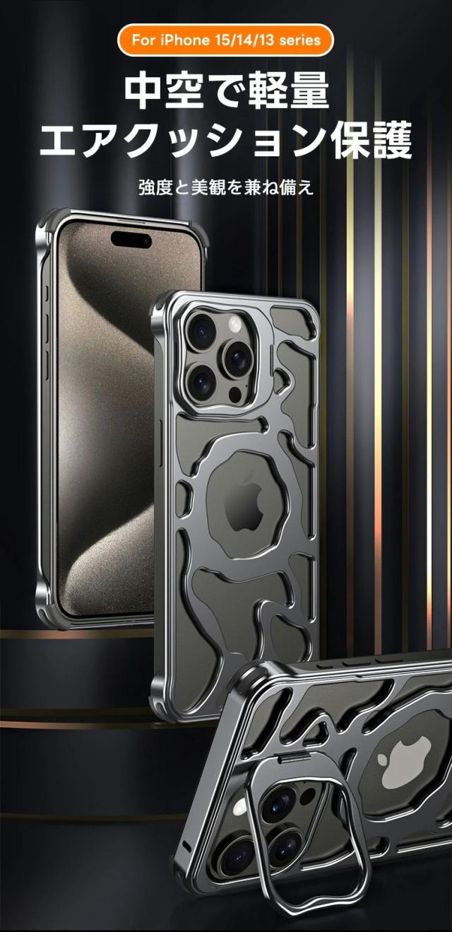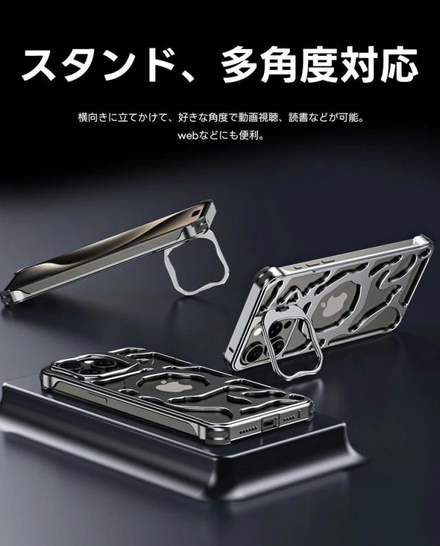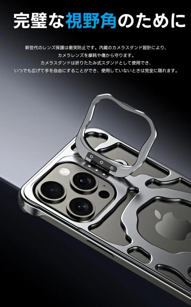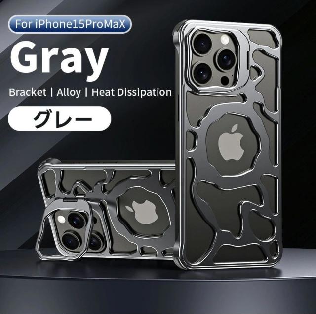 スマホケース アイフォン 16 プロ ケース iPhone 15 Pro Max iPhone 14 14Pro 14ProMax ケース 高級マグネット レンズリングスタンド フレームレス 中空放熱電話ケース iPhone 14 13 15 Pro Max ケース 耐衝撃 メタルカバー グレー iPhone 13 Pro スマホケース