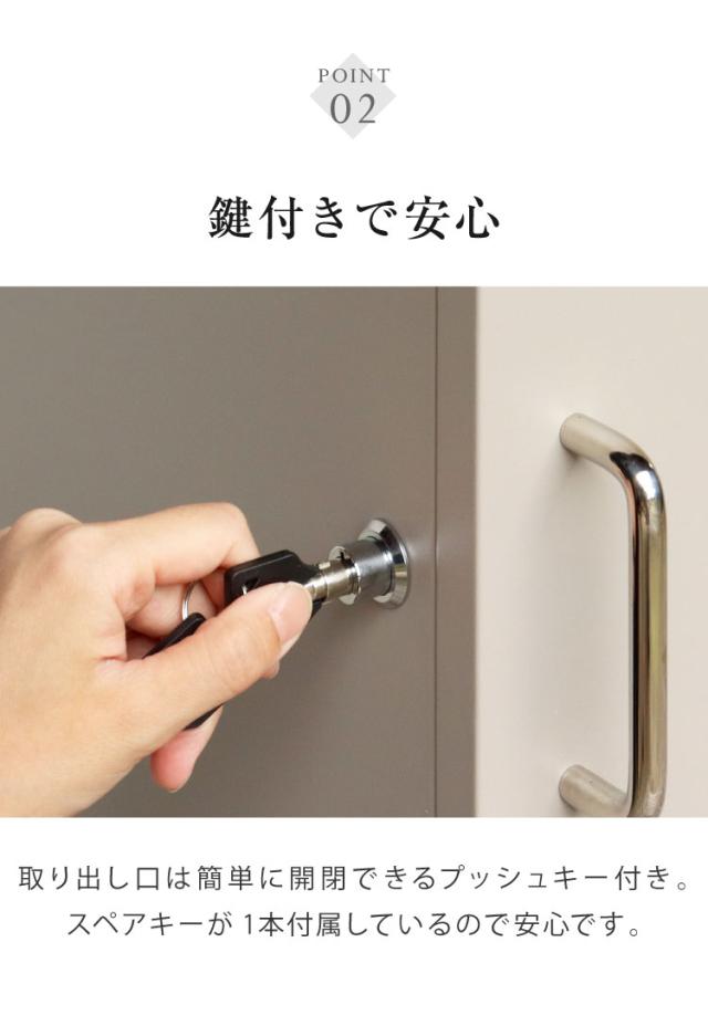 鍵は、プッシュキーで簡単に鍵の開閉が可能で、防犯面にも安心です。また、スペアキーが1本付属しております。