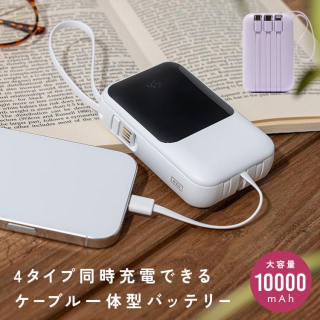 モバイルバッテリー iPhone 大容量 軽量 小型 10000mAh ケーブル内蔵 lightning 災害 ストラップ 機内持ち込み可能 防災ライト 便利 4台同時充電 Type-C 残量表示 PSE認証 スマホ充電器 Android 全機種対応 旅行 出張 外出 防災グッズ