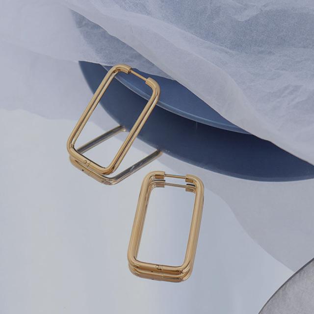 ピアス つけっぱなしピアス 大ぶり 長方形 四角 フープピアス フープ 金属アレルギー対応 ピアス 医療用 ステンレス サージカルステンレス 金アレ ゴールド シルバー レディースホワイトデー お返し wh_other
