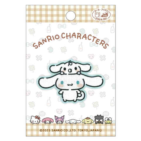 シナモロール ワッペン 5.7×3.8cm ゆるっとシンプル シール・アイロン両用 帽子 バッグ 目印 入園 入学 かわいい パイオニア 送料無料