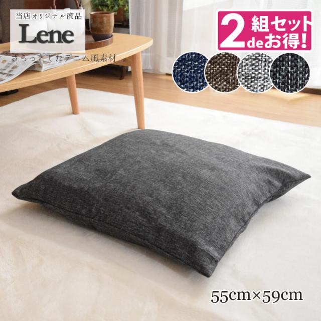 クッション 座布団 クッションカバー 座布団カバー 中身セット 大判 2個組セット リネン風 麻混風 おしゃれ リーネ 約55×59cm 選べる4色 無地 デニム風 シンプル
