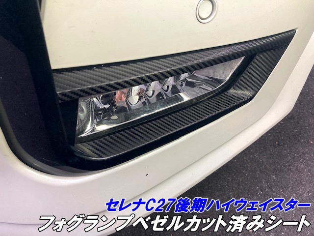 セレナ C27系後期ハイウェイスター フォグランプベゼル カット済シート 3Mシート使用 カーボン柄などカラー選択 外装アクセサリー カスタムパーツ シール
