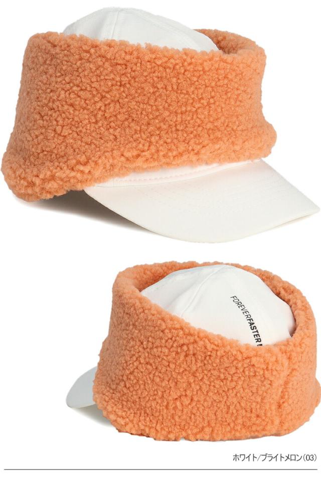 3WAY仕様の耳あて付きキャップ。キャップフロントに「PUMA」ロゴ刺繍、バックに「FOREVER FASTER.PUMA」ロゴプリント、耳当てに「サークルCAT」ロゴワッペン。キャップのバックベルトはゴム付きベルクロアジャスター。