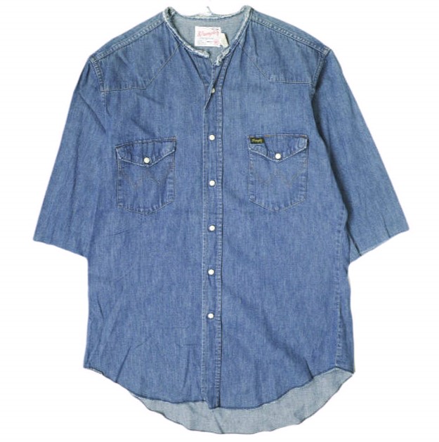 Wrangler ラングラー アメリカ製 70s 白タグ 27MW カットオフデニムウエスタンシャツ 16-34 Indigo 五分袖 ヴィンテージ MADE IN USA