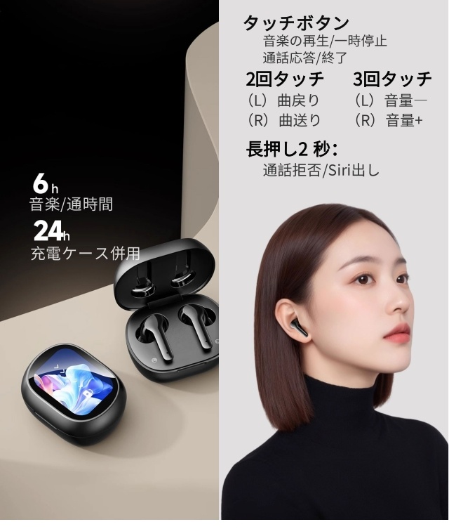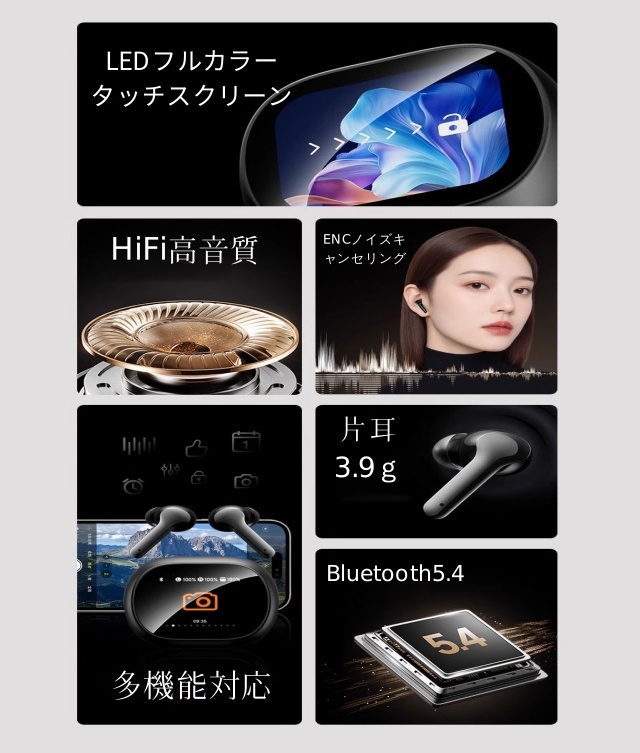 【2025最新型タッチパネル搭載】ワイヤレスイヤホン Bluetooth5.4 液晶付き イヤホン Bluetooth イヤホン ノイズキャンセリング LEDタッチパネル 音楽再生 Hi-Fi高音質 自動ペアリング iPhone Android