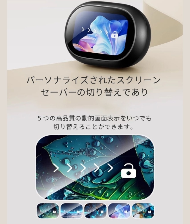 - コンパクトで簡単に接続でき、音質や耳へのフィット感がとてもよいです。 充電ケースにタッチスクリーンがあり、そこでいろいろな操作できるのが便利だと思います。