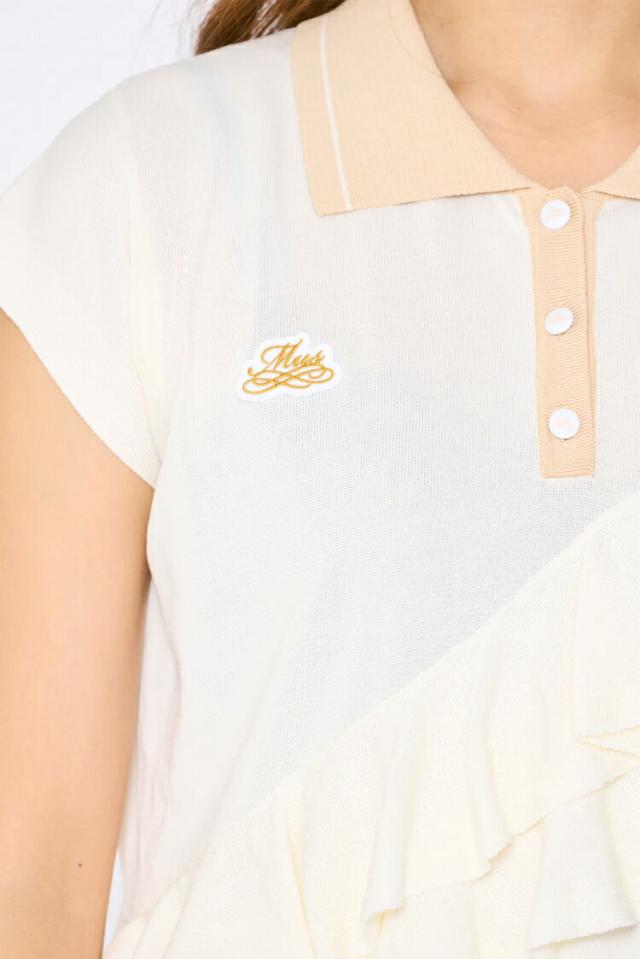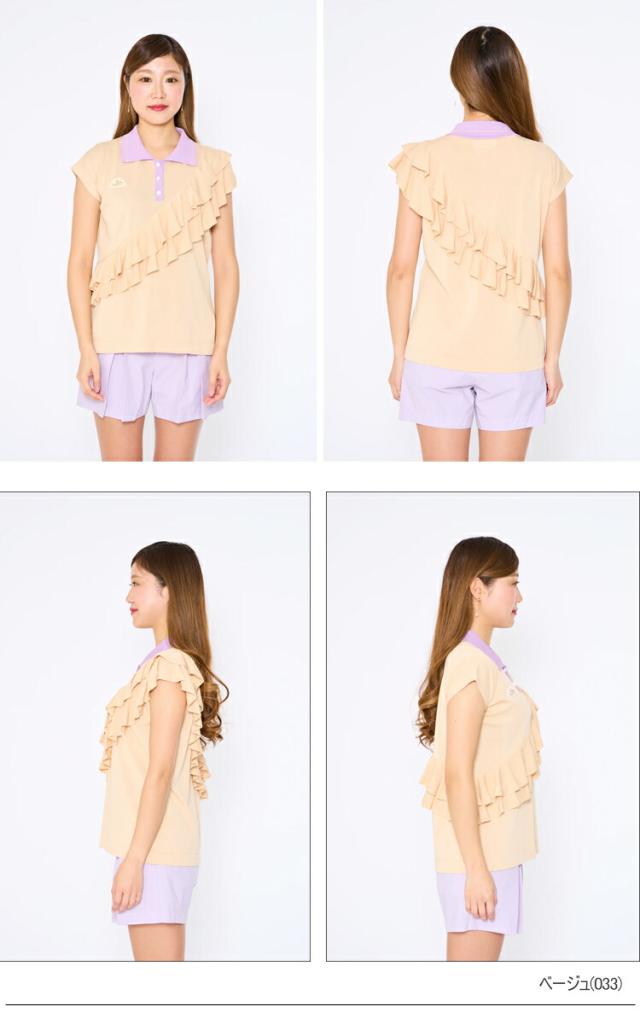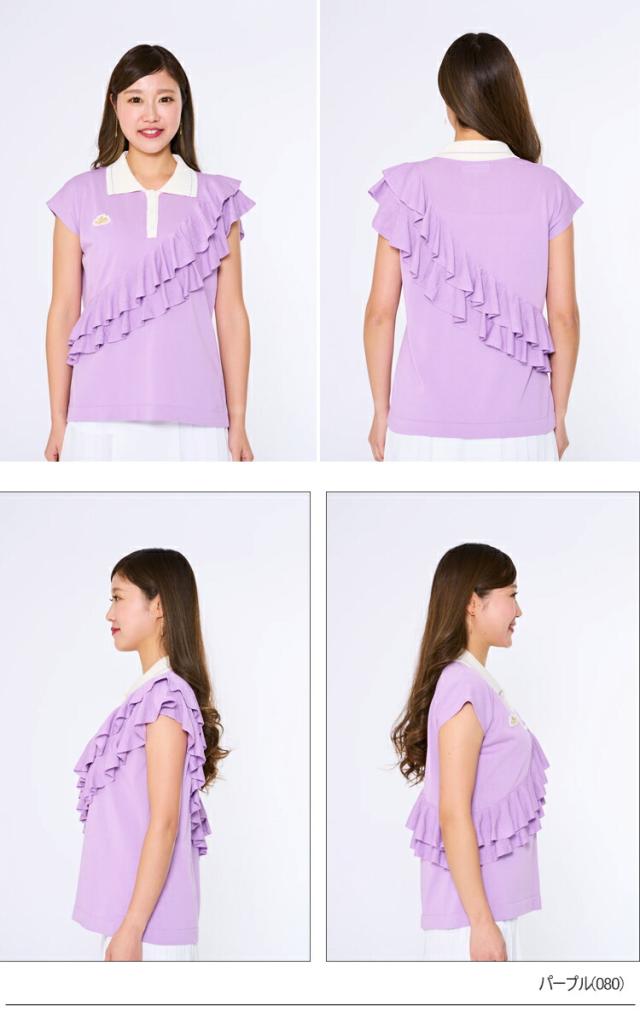 MUスポーツ ミエコ ウエサコ アシンメトリダブルフリルニットポロ オーガニックコットン ECO レディース ゴルフ ウェア 「MIEKO UESAKO 701H3200」 2022年春夏モデル