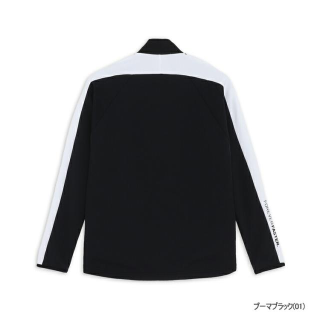 PUMAGOLF独自のONELINEカットを採用したコンビフルジップジャケット。機能の異なる素材を使い分けたテクニカルなアイテム。ストレッチ性の必要な背面、袖にはスウェット素材を前身頃には3レイヤー素材の防風性を搭載。ベースボールカラーを採用しスイング時にあごに衿が当たるストレスを軽減。フロントのコンビZIPがアクセントに。 レギュラーフィット。