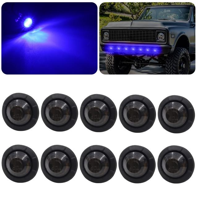 Aoling マーカーランプ トラック用 ブルー サイドマーカー LED 12V RV バス 路肩灯 軽トラ 3LED スモークレンズ 防水防塵 高輝度 トレー