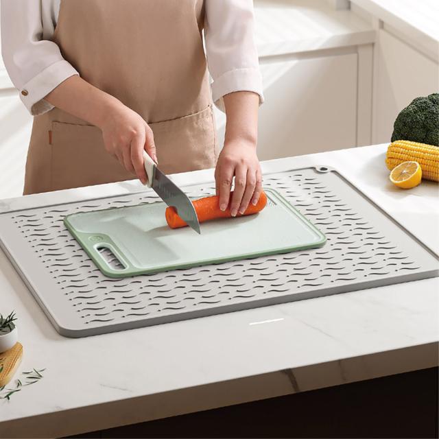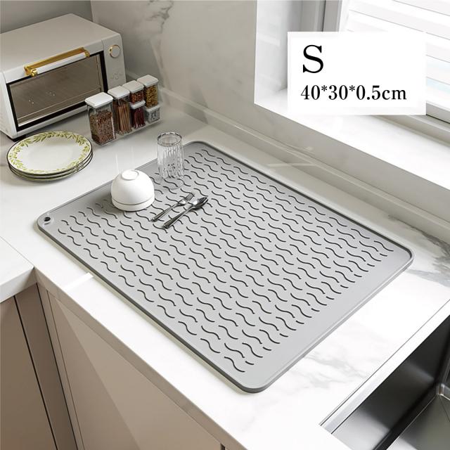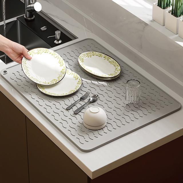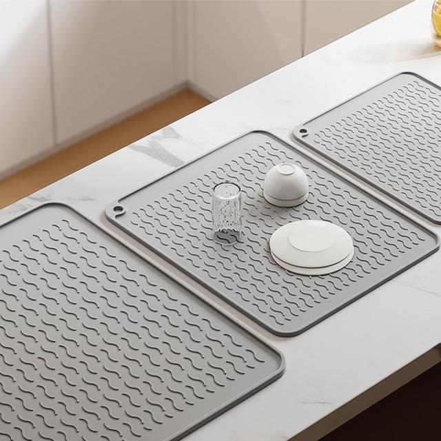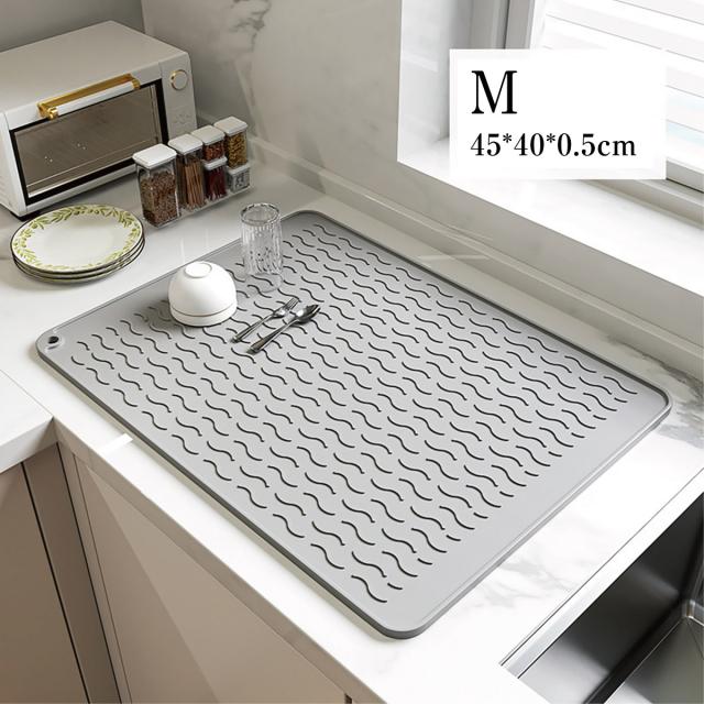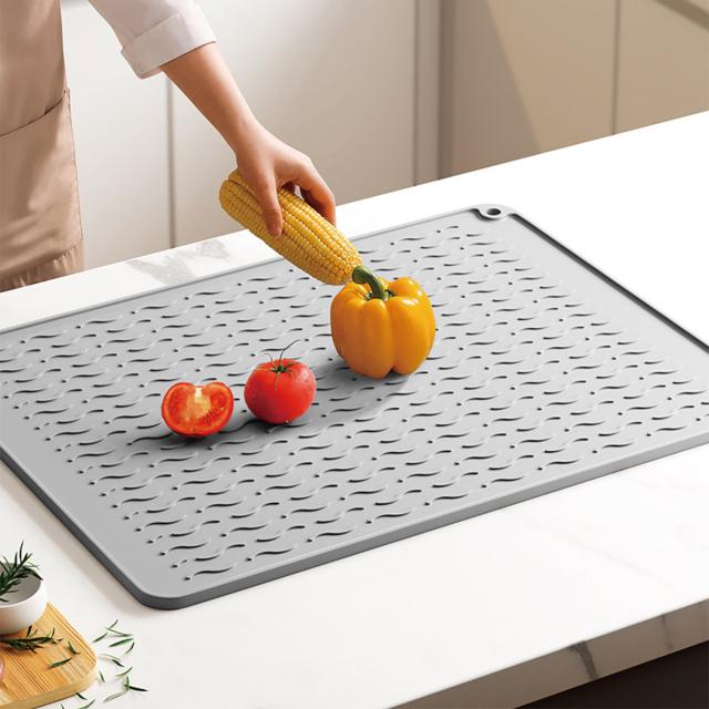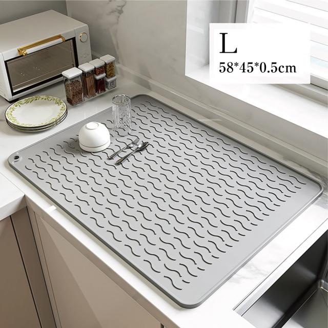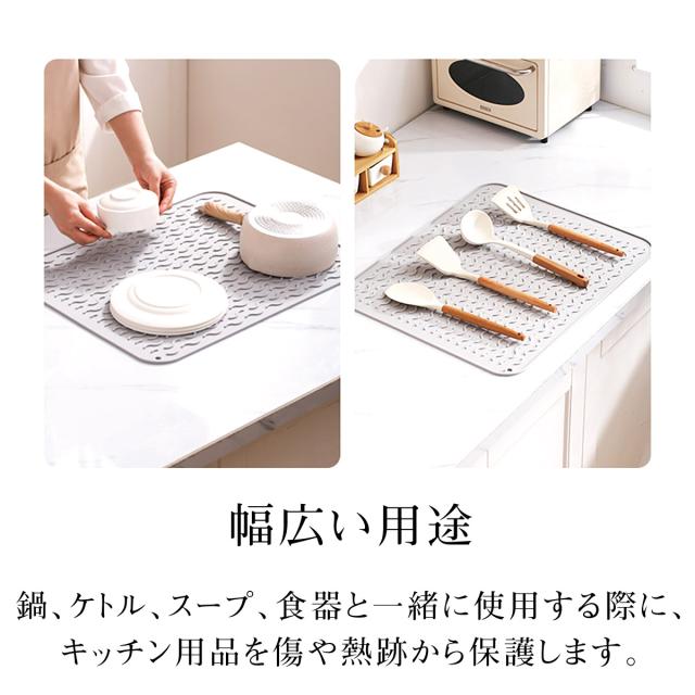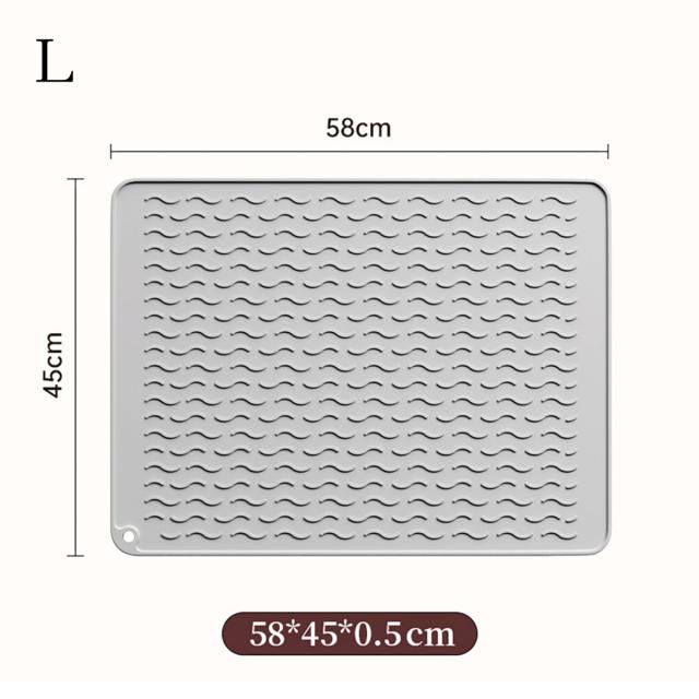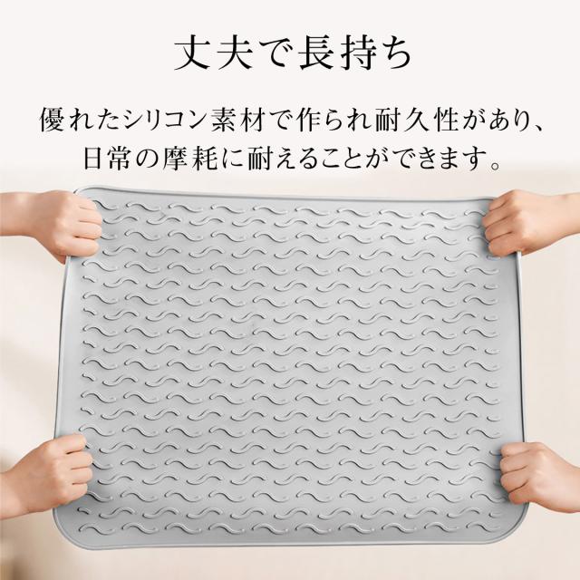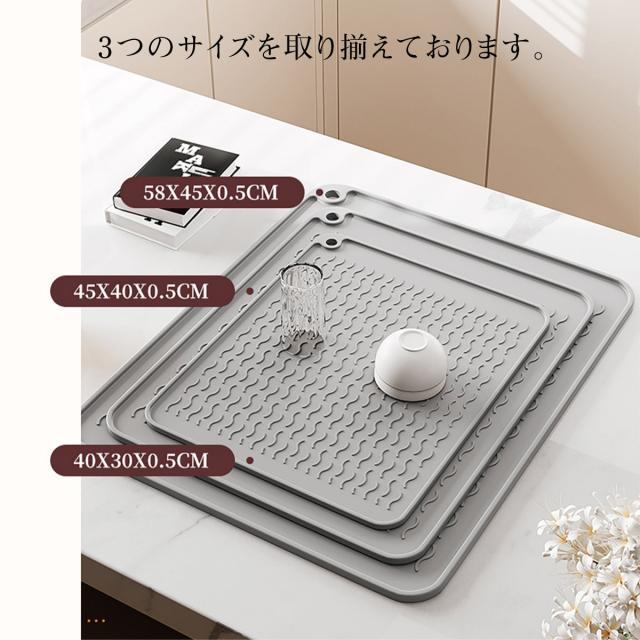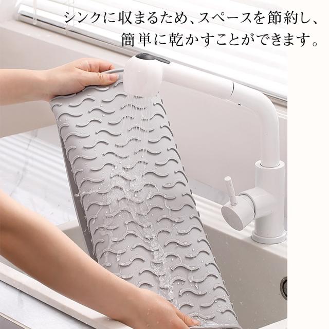 【Lサイズ45×58cm】水切りマット キッチン 大判 シリコン製 乾燥用マット 断熱マット 食器 水切り トレー 滑り止め 丸めて収納 45×58cm mizu-mat-l