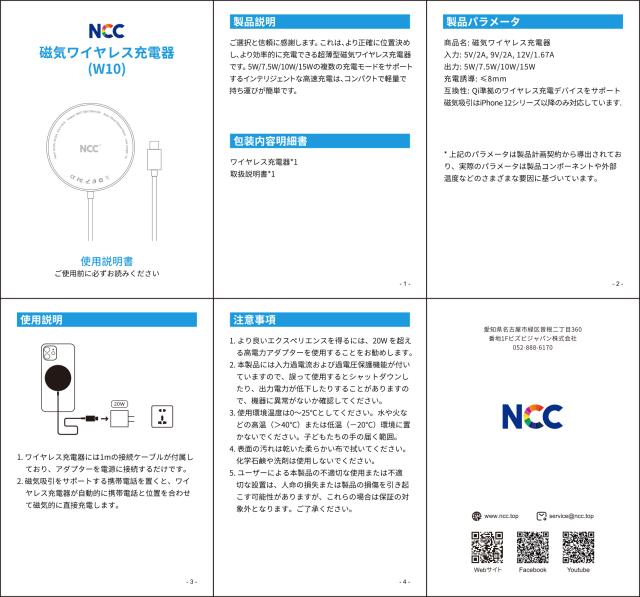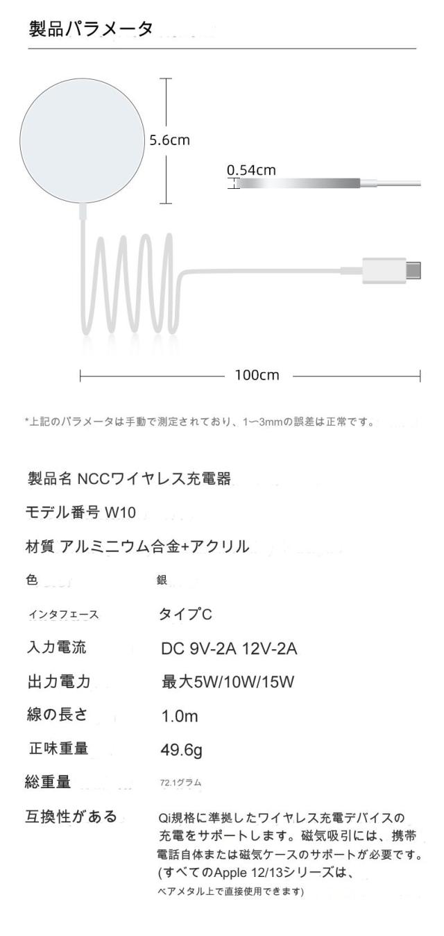 NCC 磁気ワイヤレス充電器 W10 iPhone MagSafe充電器 Apple Watch 15W高速充電 type-c 充電コード 充電ケーブル 磁気吸引 磁石ワイヤレス[ギフトラッピング対応]