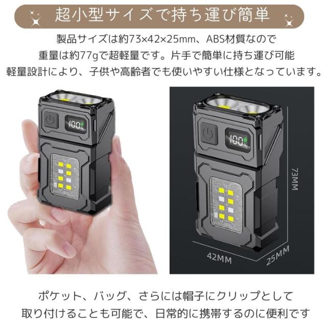 この小型で多機能な懐中電灯は、優れた明るさ、利便性、耐久性を兼ね備えています。日常生活からアウトドア、緊急時まで、さまざまな場面で活躍すること間違いなしです。ぜひ、この高性能な懐中電灯をお試しください!