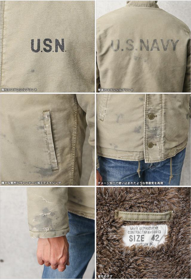 HOUSTON ヒューストン WAIPER別注 5N-1XVW 米海軍 タイト N-1デッキジャケット VINTAGE加工 日本製【T】【Cx】|ミリタリージャケット メンズ アウター ヴィンテージ ブランド おしゃれ 大きいサイズ n1 米軍
