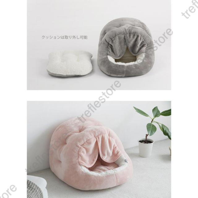 【ポイント5倍!】ペットハウス ペットベッド ドーム型 キャットハウス ふわふわ クッション イヌ小屋 犬用 猫用 秋 冬用 可愛い 洗える 白 ネコ耳付 ねこ マット あったか 犬小屋