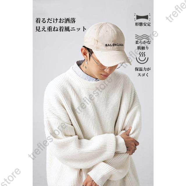 【ポイント5倍!】オーバーサイズ セーター メンズ 冬 オーバーサイズ ニットセーター メンズ ビッグシルエット ニット メンズ レイヤード風ニット 重ね着風ニット メンズ