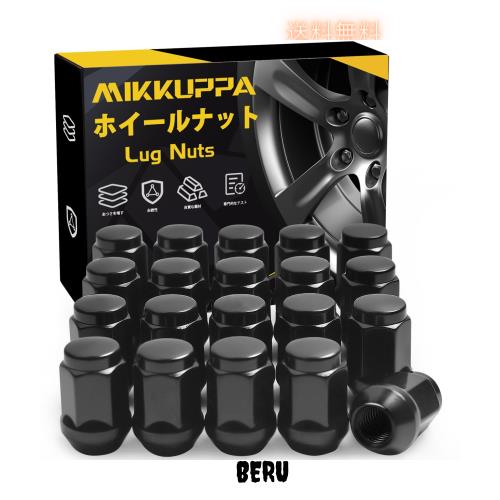 MIKKUPPA ホイールナット M12 x P1.5 テーパー座60° 長さ35mm スチール製 19HEXニッサン・スバル・スズキの普通車と軽自動車に対応 20個 セット ブラック