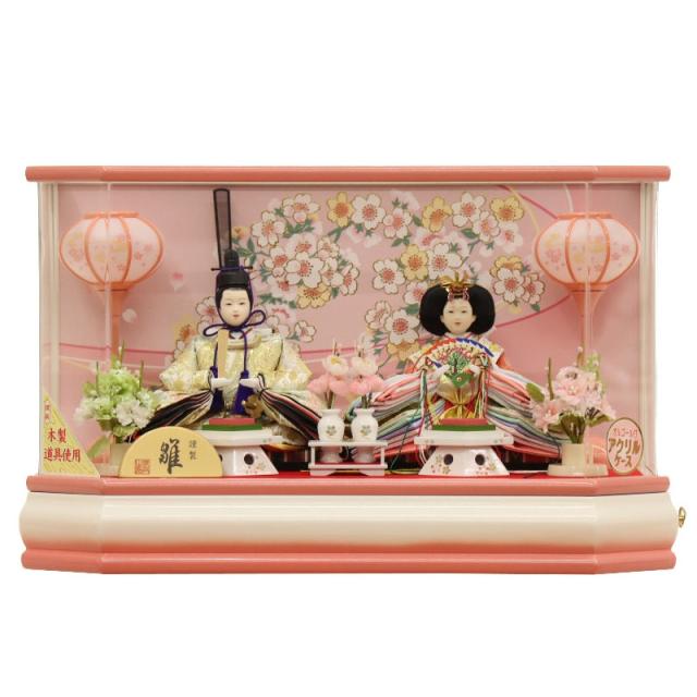 雛人形 ケース飾り 朝陽 芥子 親王 ピンク塗り六角ケース オルゴール付き 2025-tg010 幅51cm 親王ケース入り 2人 ひな人形 お雛様 桃の節句 節句 お祝い インテリア