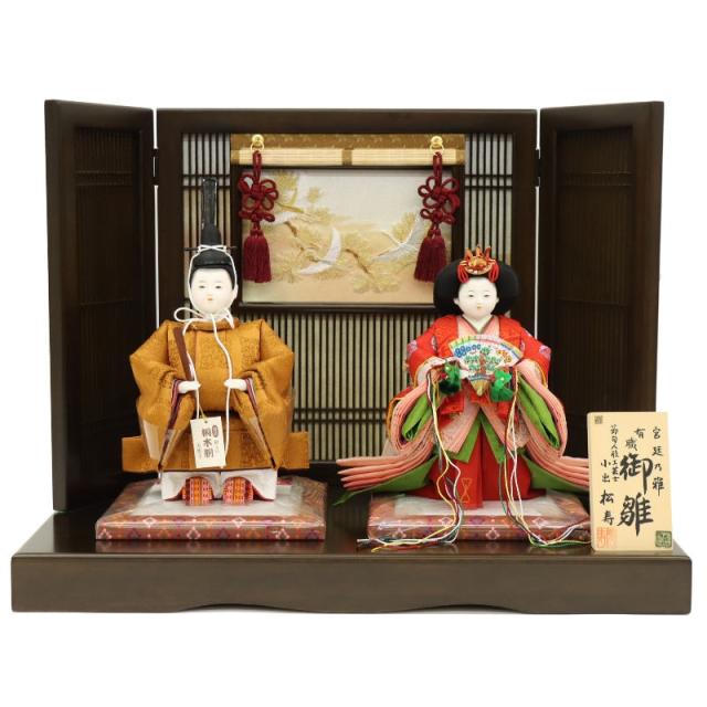 雛人形 立雛 雅 小出松寿 五寸 親王 黄櫨染 おぼこ雛 御簾付屏風 2025-tg047 幅58cm 平飾り 2人 ひな人形 お雛様 桃の節句 節句 お祝い インテリア