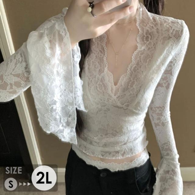 トップス レース セクシー ブラウス 長袖 Vネック インナー 韓国風 大人 可愛い かわいい 秋 冬 春 オフィス 通勤 20代 30代 40代 OL レディース ファッション ぽっちゃり ゆったり カジュアル おしゃれ de135n1n1m6
