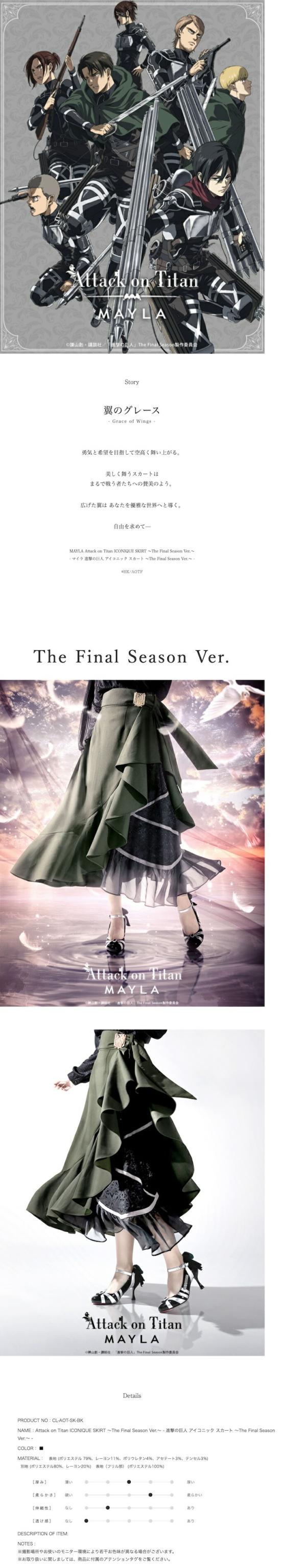 MAYLA マイラ 進撃の巨人 グッズ スカート 進撃の巨人 アイコニック スカート The Final Season Ver. レディース 女性 正規品 新品 公式 進撃の巨人 キャラクターグッズ 人気 ブランド プレゼント ギフト