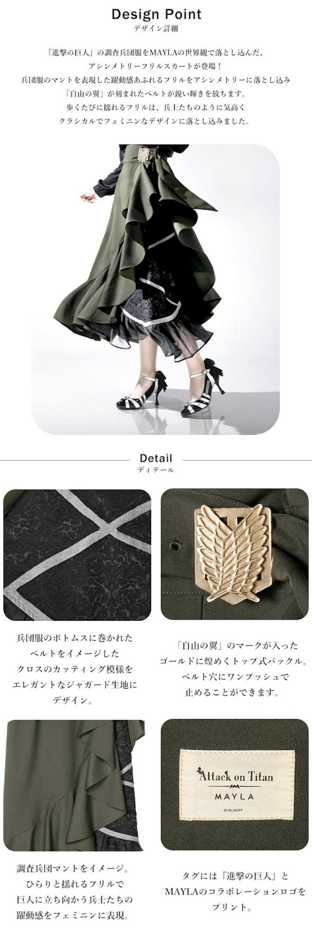 『進撃の巨人』の調査兵団服をMAYLAの世界観で落とし込んだ、アシンメトリーフリルスカートが登場!