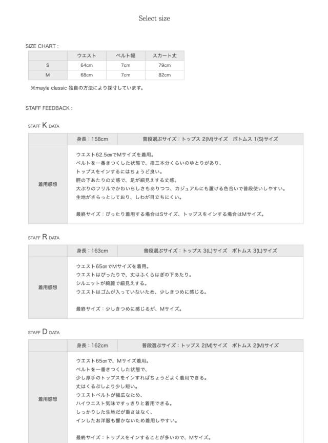 MATERIAL: 表地 (ポリエステル 79%、レーヨン11%、ポリウレタン4%、アセテート3%、テンセル3%) 別地 (ポリエステル80%、レーヨン20%) 表地(フリル部) (ポリエステル100%)