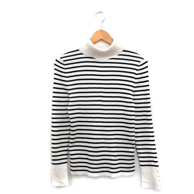 【中古】シューラルー SHOO・LA・RUE リブ ニット セーター 長袖 タートルネック ボーダー M 白 /KT17 レディース
