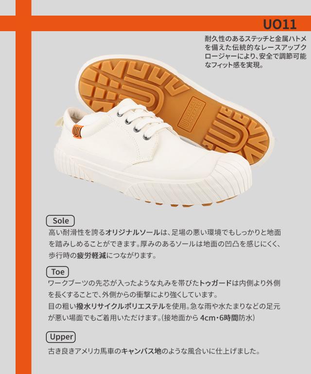 UNIVERSAL OVERALL ユニバーサルオーバーオール スニーカー レディース スニーカー メンズ ローカット スニーカー キャンバス 撥水 防滑 防水 ラバーソール ブラック 黒 カーキ ベージュ ホワイト 白 レースアップシューズ 紐靴 オリジナルソール ユニセックス UO11