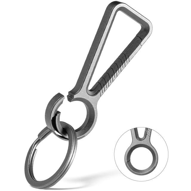◆商品名:TIMULTI チタン カラビナ クリップ 車用 キーホルダー フォック フック キーリング付き (グレー・チタン キーホルダー1