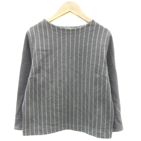 【中古】エニィファム anyFam カットソー 七分袖 ストライプ柄 2 グレー /YM22 レディース