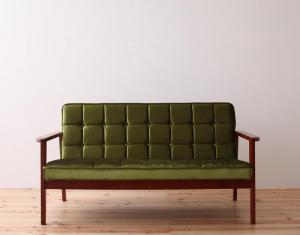 商品仕様: モケット緑 グリーン 木肘 レトロソファ ソファ 2人掛け 2P