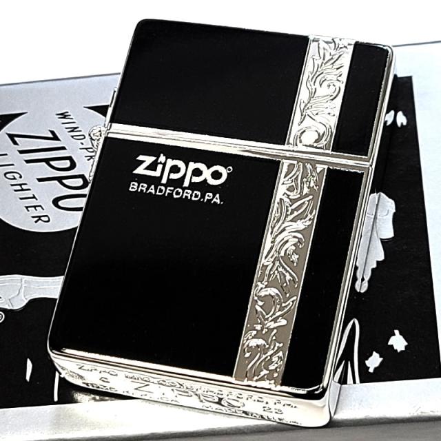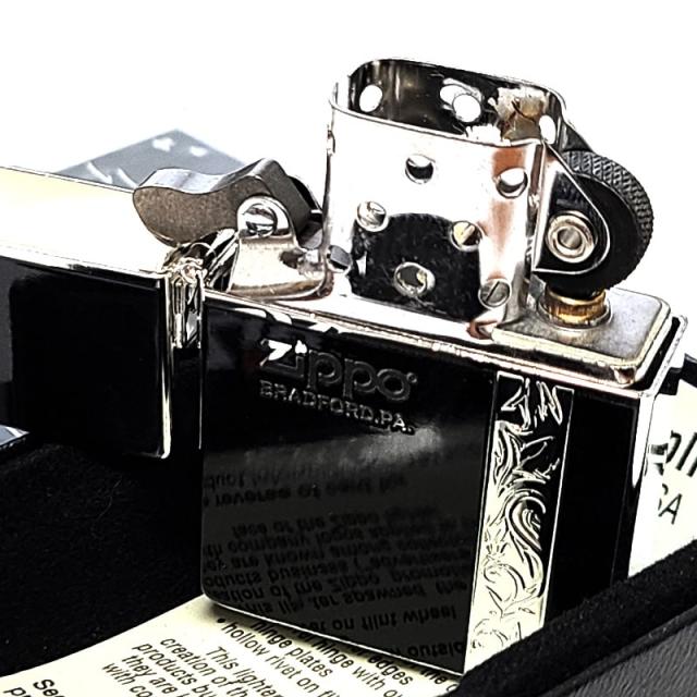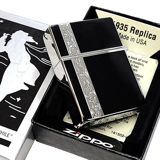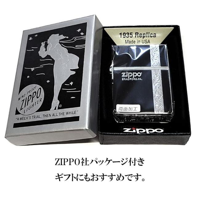ZIPPO 1935復刻 ヴァーティカルアラベスク ジッポ ライター ブラック シルバー 彫刻 かっこいい 両面加工 黒銀 おしゃれ 上品 メンズ