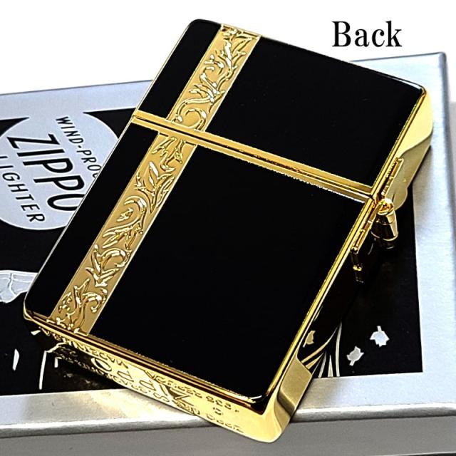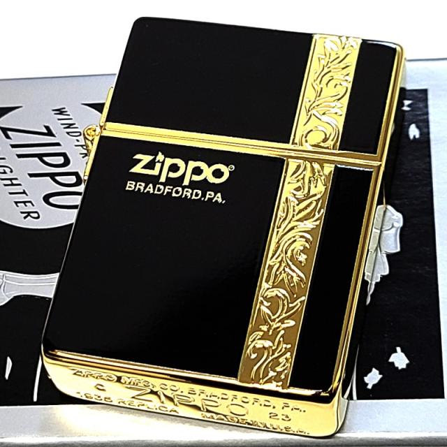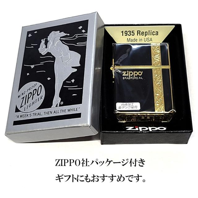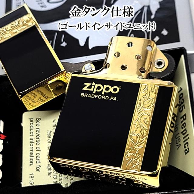 ZIPPO ライター 1935復刻 ヴァーティカルアラベスク ジッポ 彫刻 ブラック ゴールド かっこいい 金タンク 両面加工 黒 おしゃれ 上品 メンズ