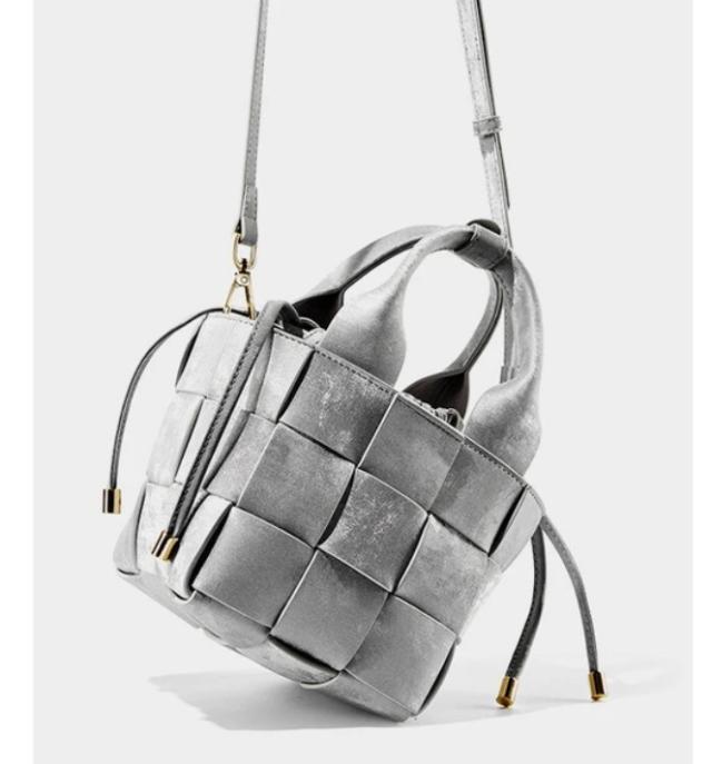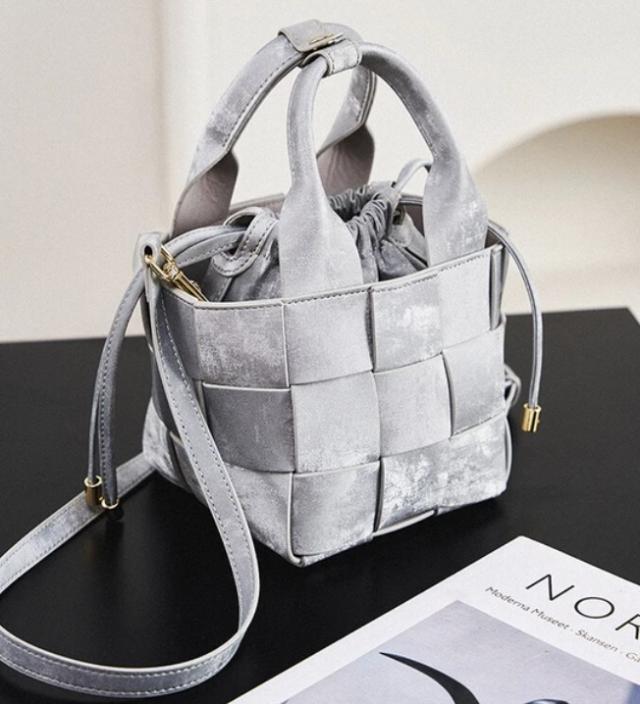 本革レザーを編み込んだおしゃれな2Wayショルダーバッグ。