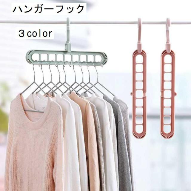 ハンガー ハンガーフック 多機能 9穴 収納 洗濯物干し 部屋干し コンパクト カラバリ豊富 オフホワイト 収納ハンガー 省スペ