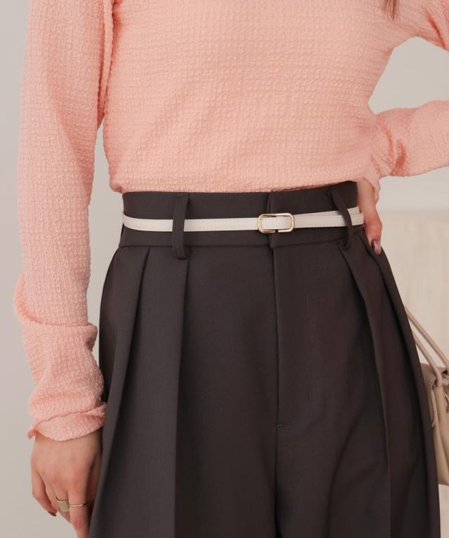 上品な小さめサイズのスクエアバックルで コーディネートを今っぽく仕上げてくれるシンプルベルトが登場!細身で華奢なルックスがウエストをほっそりと見せてくれます。高級感のある合成皮革で、控えめな光沢感はデイリー使いにはもちんオフィスシーンにもぴったり。様々な場面で選びたくなる豊富な6カラーをご用意いたしました。
