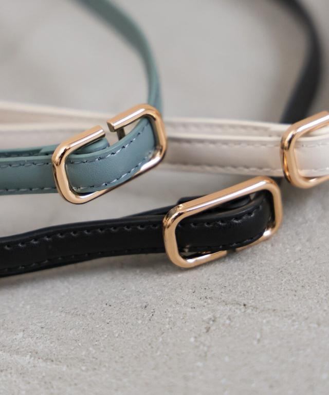 リッチ感のある合成皮革を採用。丸みを帯びたゴールドのスクエアバックルは女性らしさを演出してくれます。