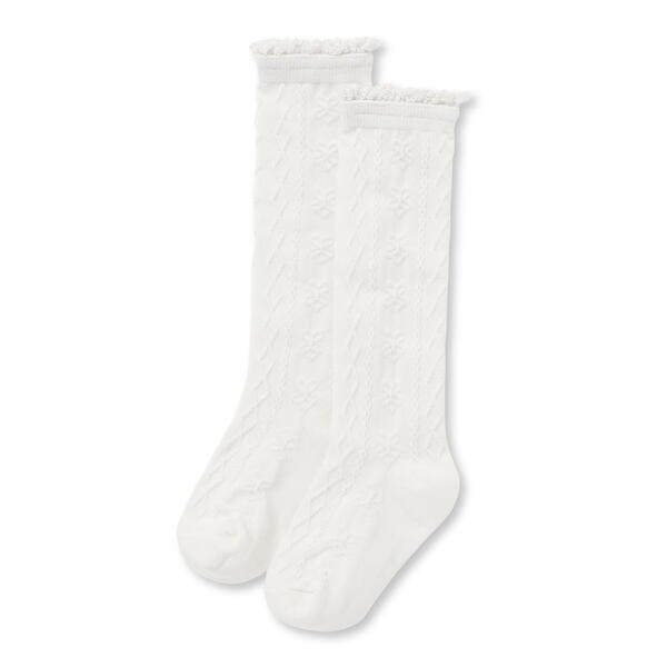 華やかなレース編みのハイソックス。