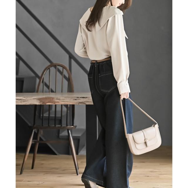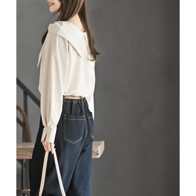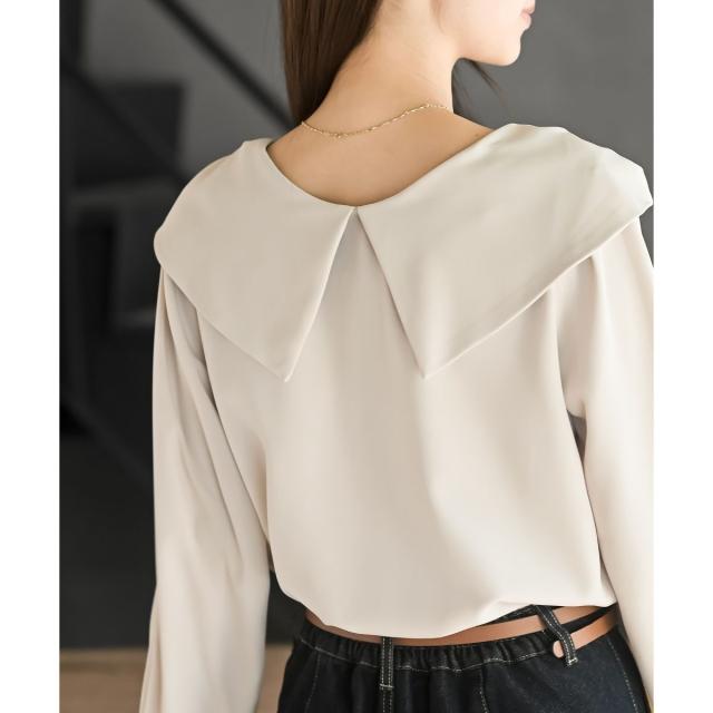 肩まで覆う大きなカラーが小顔効果ももたらします。