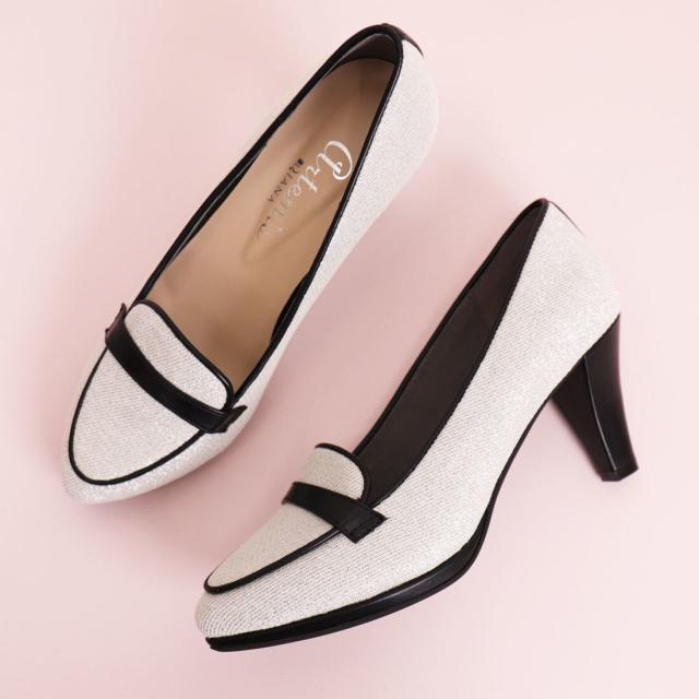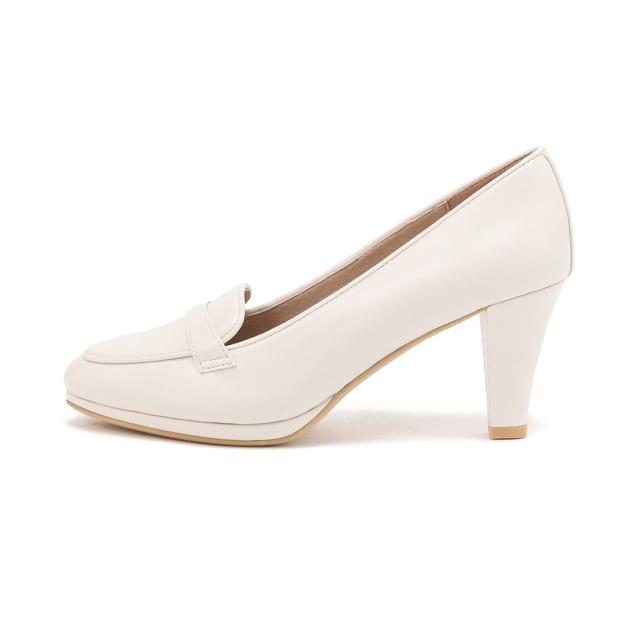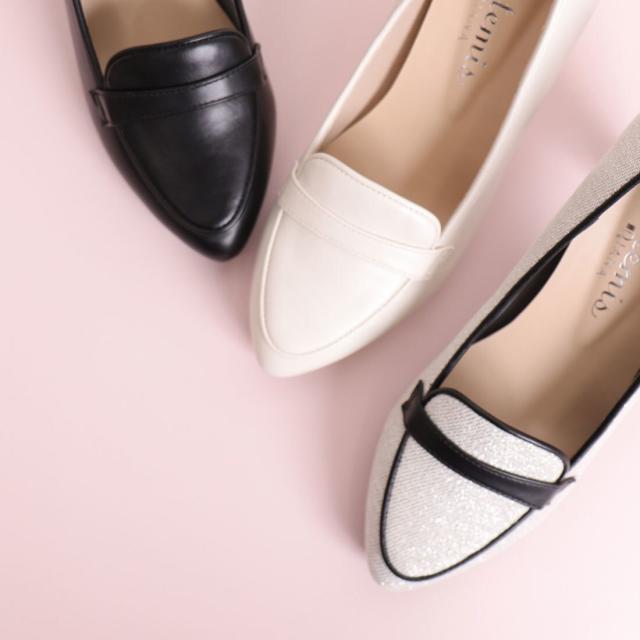 ・カジュアルになりがちなローファーも、ヒールアップにすることでお仕事でも使いやすい上品なスタイルへ。