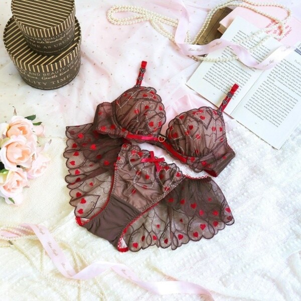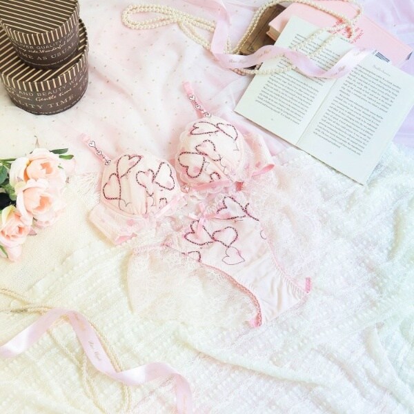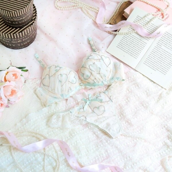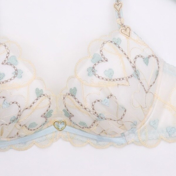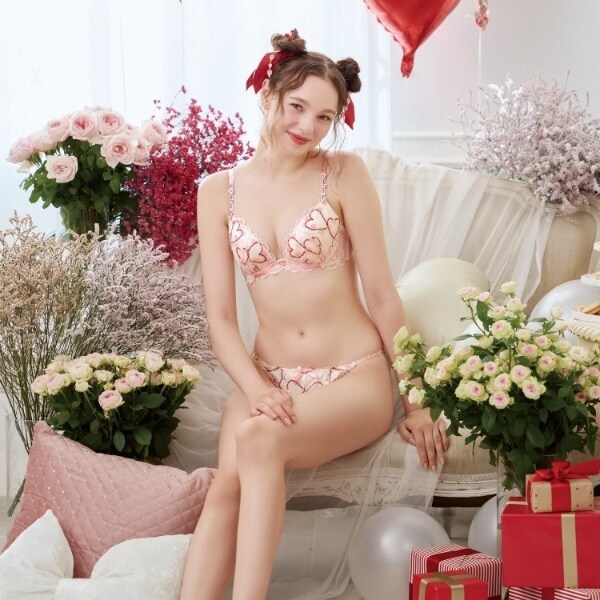 ストラップにはアクセサリーをイメージしたハートのアップリケをあしらい、思わず目をひく豪華なディテールに仕上がりました。カップ下にはリボンテープとゴールドのハートモチーフを添えて、大人の上品さを演出。細部までこだわりを詰め込んだ、Sweetなバレンタインコレクションをお楽しみください。