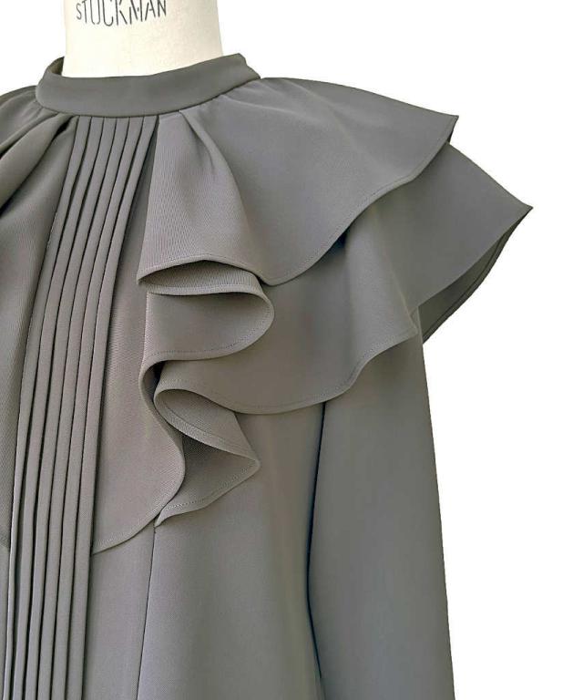顔周りを華やか、小顔に見せてくれるフリルカラー。