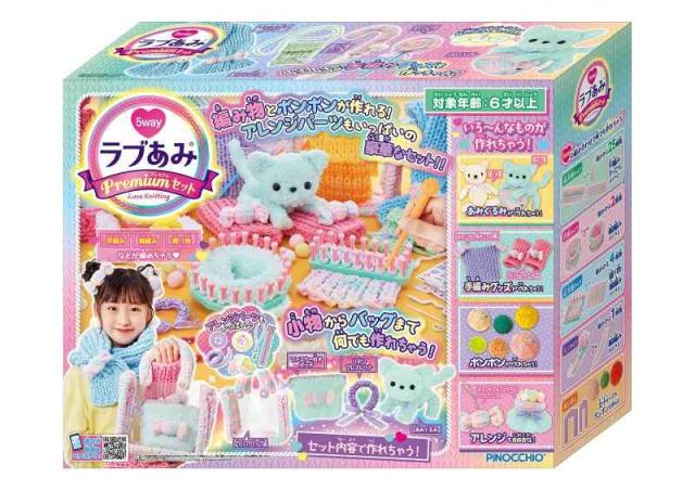 簡単にマフラーや帽子などのニット小物が編める編み機「ラブあみ」のプレミアムセットです。